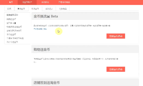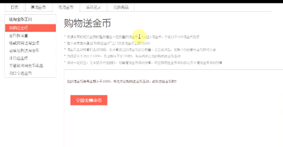 在买家完成了购物,花掉了淘金币之后,就要开始赚金币了。那根据这一现象,我们的掌柜们可以进行花金币的设置,运行购物送金币活动。